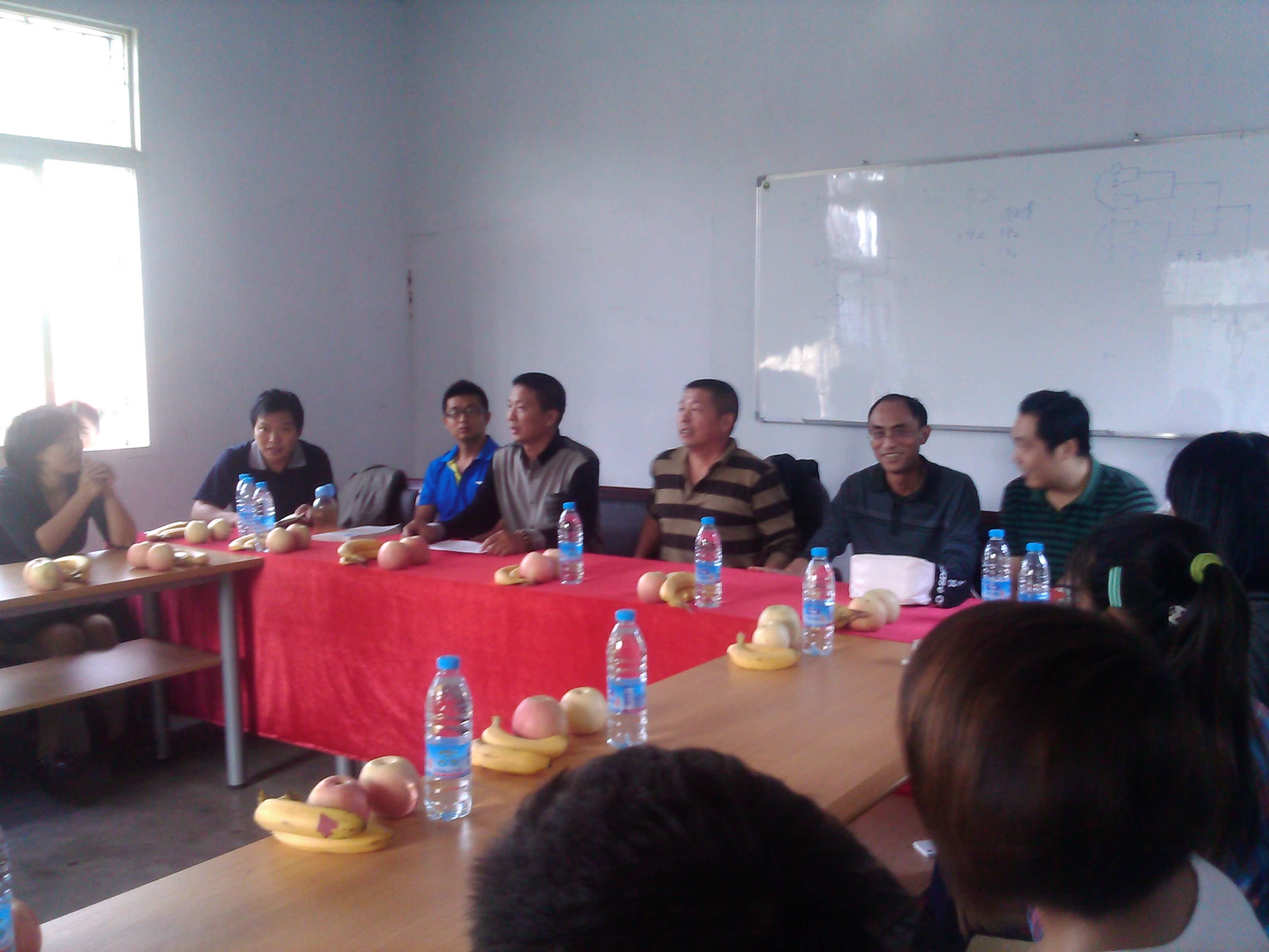 公司为了表示对2013届省外新同学的热烈欢迎,928下午5点在新校区田径场会议室召开了公司首届省外新生座谈会。董立主任、佘涛书记、陈碧述副主任、张皓书记、孙亮亮老师、2013级各班班主任及辅导员参加了本次座谈会,并与本院18名省外同学进行了交流。