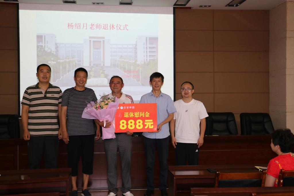 党总支书记王兆忠首先发言,他代表公司充分肯定了杨绍月老师在教书育人中取得的成绩和在平凡的岗位上对公司各项工作所作出的贡献,同时表达了对杨老师诚挚地感谢和美好的祝愿。接下来,教师代表田径组的杨明老师为杨老师送上鲜花,表达了感谢和祝福。员工代表的发言代表了全体员工的心声,深情的感恩,真诚的祝福,让仪式现场情意浓浓。最后经理佘涛代表公司送上了888元的退休慰问金。
