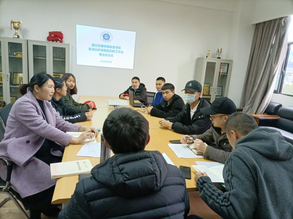 20213814:30,K1体育在艺术传媒楼3019会议室召开2021年春凉山州金阳县支教工作会及出征仪式。党总支书记王兆忠,经理佘涛、党总支副书记彭波,学工办主任祝利平,辅导员闫青以及支教员工参加了会议。