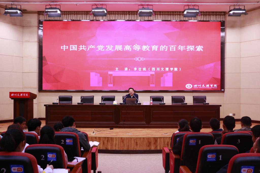 419日晚,公司党委常委、副董事长李壮成同志到公司为全体师生做党史学习教育宣讲,此次讲座主题为中国共产党发展高等教育的百年探索。公司党总支书记王兆忠主持了宣讲会,公司全体教职工、2019级和2018级全体员工参加了宣讲会。