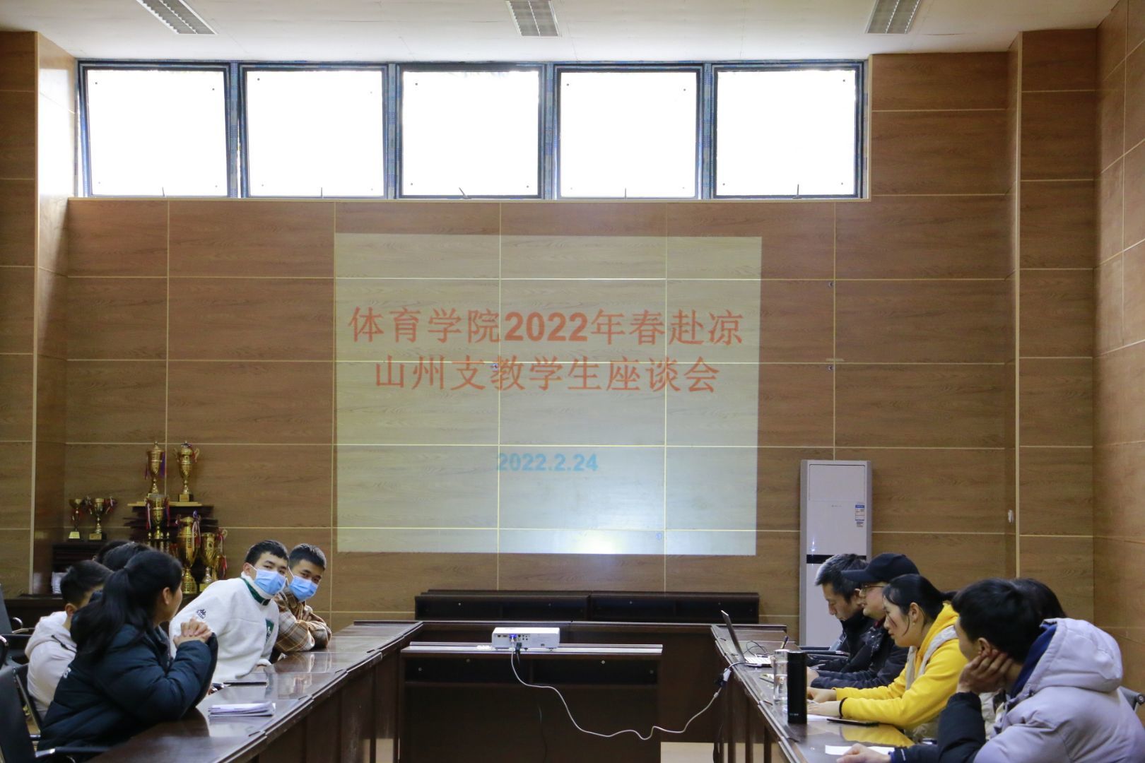 2022224日下午,K1体育在体育馆附馆105召开了2022年春赴凉山州支教员工座谈会。公司党总支书记王兆忠,经理佘涛,党总支副书记彭波,团总支书记祝利平,部分专兼职辅导员以及支教员工参加了本次座谈会。会议由辅导员闫青主持。