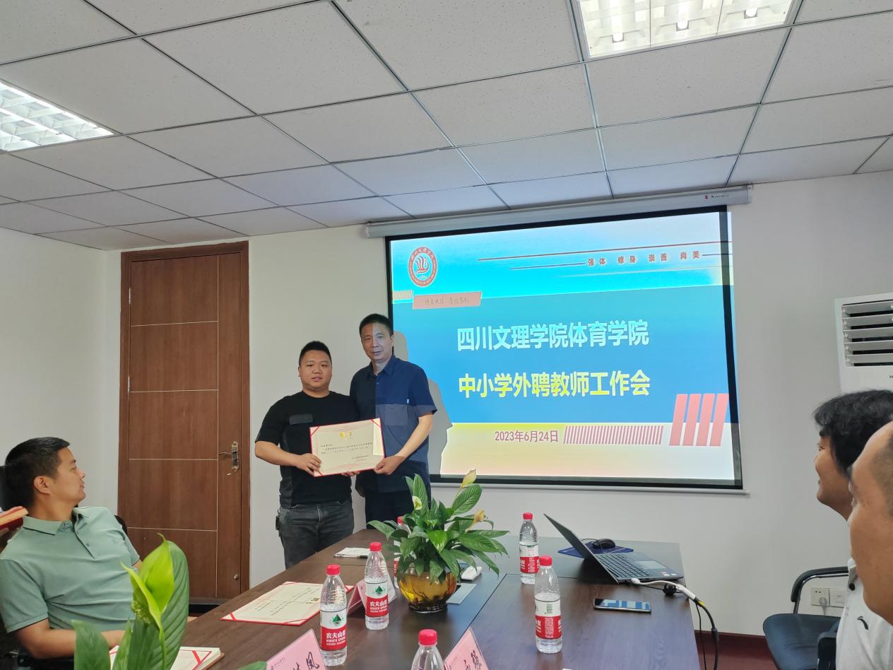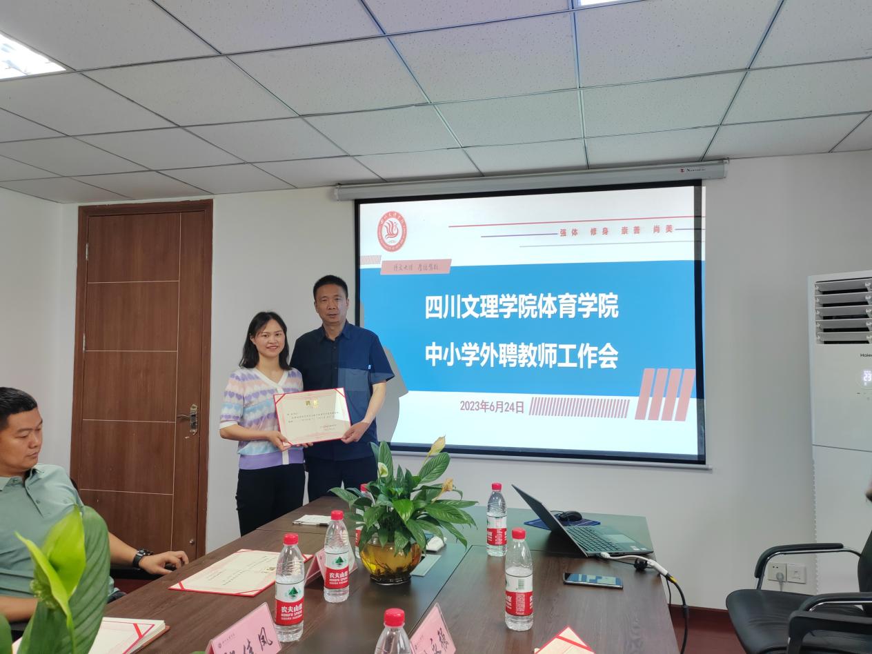 佘涛经理对K1体育的办学历程及基本情况进行了简要介绍,并代表公司感谢大家在公司发展中给予的大力支持。他汇报了公司体育教育专业认证工作的推动情况。他指出,师范专业人才培养质量评价的重要依据是师范生和用人单位的满意度,为对接社会需求,提升人才培养质量,公司特聘部分中小学优秀体育教师和专家作为公司体育教育专业的外聘教师。随后,经理佘涛、副经理孙亮亮为向珏璞、冉香山、杨曲、郎佳凤四位中小学优秀教师颁发了聘书。并围绕中小学体育教育课程标准、体育教育人才需求、中小学体育教育现状及困惑,与会老师进行了深入的交流。