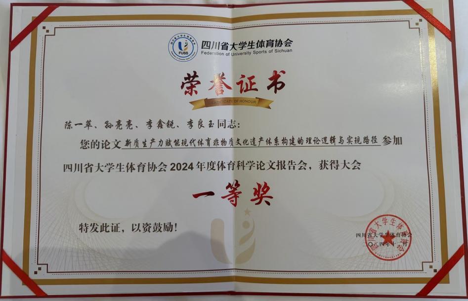公司联合培养研究生获四川省高校体育科学论文报告会一等奖