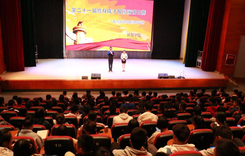 2019年10月26日上午9:30,K1体育在文传多功能厅举办“修身、成才、报国”演讲比赛。党总支书记王兆忠、党总支副书记彭波、团总支副书记马思远老师、辅导员祝利平老师及2019级全体同学出席了此次活动。