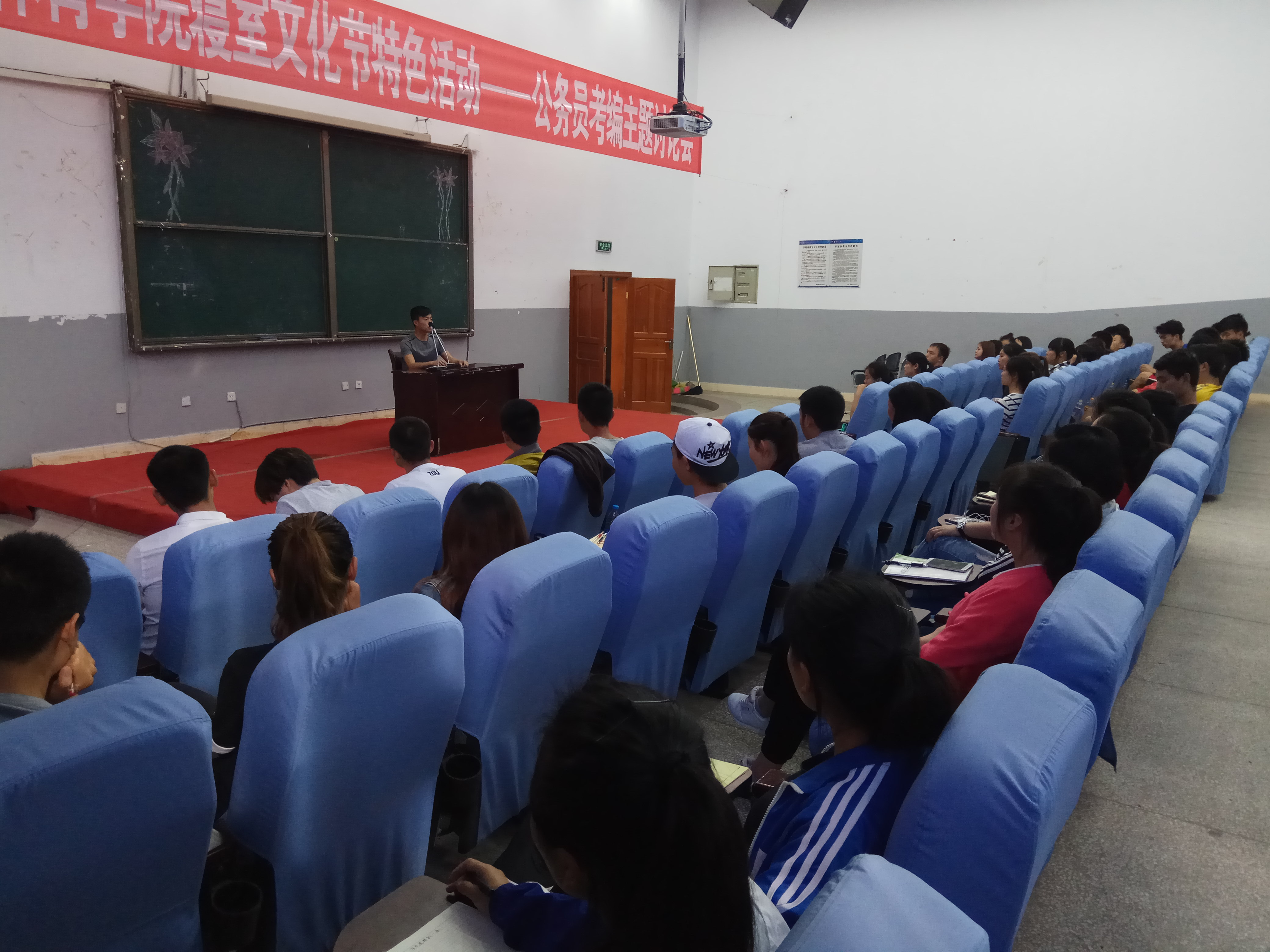 5月9日16:30至18:00,公司在一教学楼113教室举行了第十五届寝室文化节系列活动之教师公开招聘模拟考试。本次活动由赵文清同学主持,公司辅导员那明明老师及大三80余名同学参加了此次活动。