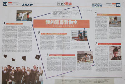 6月15日,《达州晚报》——《周刊.深度》版“我的青春我做主—走进达城老员工的毕业季”一文对公司五名老员工的青春故事进行了深度报道,特别将公司体育教育专业2009级2班班长王涛同学的创业成才故事作为首条报道内容。文章详细阅读见6月15日达州晚报。