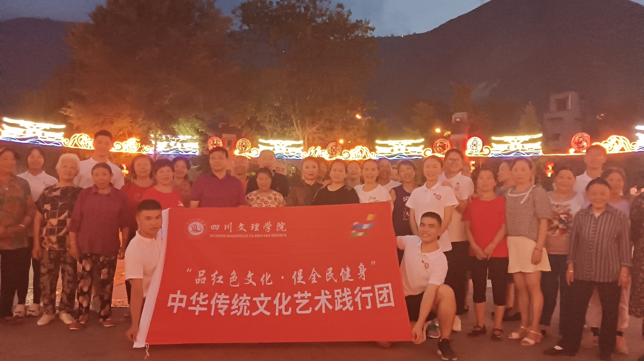 8月19日下午,践行团在汶川县威州镇锅庄广场组织当地居民(约100人)一起开展了全民健身活动。活动结束后当地居民热情邀请践行团成员一同参与当地特色广场舞锅庄舞。