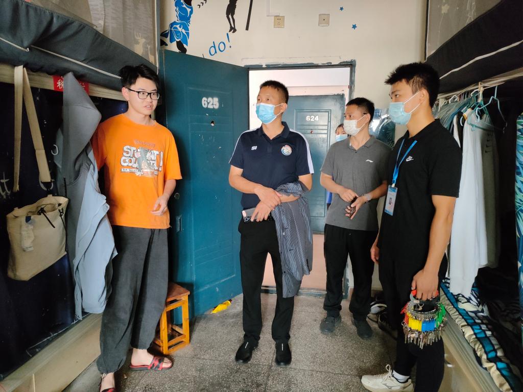 随后,走访人员分六组分别前往公司员工所在楼舍。在走访过程中,老师们仔细查看了宿舍的安全状况,认真聆听了同学们的建议和意见,耐心地对员工们做了要求和提醒。特别强调了严格遵守并落实疫情防控的相关要求,努力克服疫情防控常态化下的线上线下混合式教学中的困难,同时要求员工务必提升安全意识,细化安全措施,希望同学不断加强自我约束、自我管理和自我提升的自觉性和有效性。