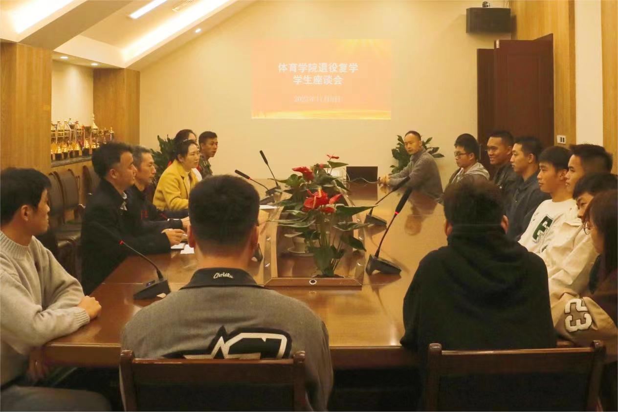 2023119日中午12:10在体育馆117会议室召开退役复学员工座谈会。公司党委书记王兆忠,党委副书记靳浪,学工办主任祝利平,辅导员石姣娜、李波及退役复学员工代表出席本次会议。会议由学工办主任祝利平主持。