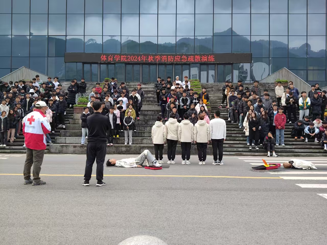 2024112212点整,K1体育于体育馆开展了消防应急疏散演练。公司党委副书记靳浪、辅导员邓超、李波、专任教师宋京林、7 名红十字救护员及2024 级全体员工参与此次活动。